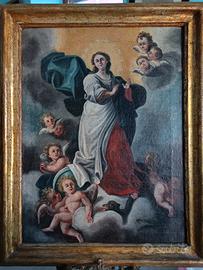 Antico e bellissimo dipinto ad olio su tela epoca XVIII secolo raffigurante la Madonna Immacolata.