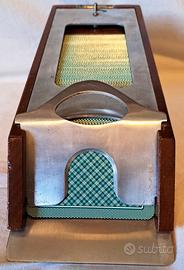 Prestigioso ed elegante Sabot professionale da Casinò J.A.J. Paris ,Teodomiro Dal Negro, Epoca presunta prima meta’ del XX secolo, in legno pregiato di Mogano ed Alluminio in ottime /buonissime condizioni, minimi segni d’uso e del tempo; si segnalano solo mancanza di uno dei tappi laterali del rullo interno (non visibile all’ esterno ed ininfluente sul suo funzionamento), lesione superficiale nel legno massello del rullo stesso, minimi graffietti nell’ alluminio attorno alla chiusura, vedi foto.