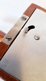 Di grande eccellenza, cura dei dettagli, particolarissimo ed unico il modo con cui si apre il coperchio superiore in alluminio tramite chiusura a scatto con piccola leva, perfettamente funzionante (brevetto della casa produttrice).