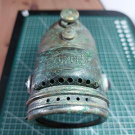 Antico fanale a carburo di acetilene per bicicletta d'epoca marca Luxor in ottimo stato di conservazione. Mai restaurato e con ancora su le macchie del tempo.