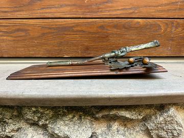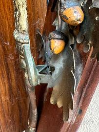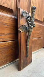 Antico e bellissimo fermacarte da parete di epoca Vittoriana, costituito da una base in legno con applicazione in metallo finemente realizzato, usato nelle osterie, trattorie, taverne per tenere le comande o altro tipo di appunti