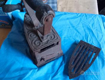 Antico ferro da stiro a carbone in ghisa, con manico in legno, vendesi al miglior offerente in quanto ricordo di famiglia