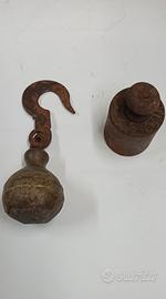 Antico gancio con peso bilancia bascula