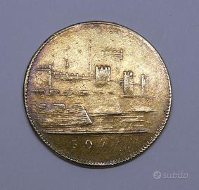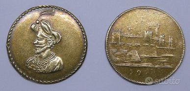 Antico gettone da gioco Token Jeton Spiel Marke Immagine: Sultano / Turco / Visir. Sul retro: Fortezza / Castello. Diametro: 2,18 cm Peso: 1,60 gr.