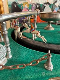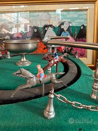 Il gioco è contenuto in una scatola di legno foderata con carta originale. I cavalli sono 8 con colori originali e numeri dipinti a mano. Pezzo raro in quanto anche negli angoli ci sono 4 teste di cavallo decorative originali. Anche il meccanismo interno è ancora originale, senza restauri.
