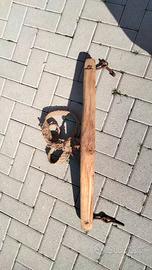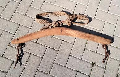 Antico Giogo Singolo per animali realizzato a inizio '900. Presenti ancora i ferri e la corda. Legno sano ed in ottime condizioni per l età. Lunghezza circa 85 cm. Ottimo da collezione o come arredo rustico.