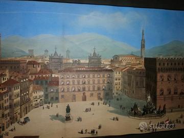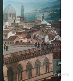 bellissima Gouache raffigurante la citta' di Firenze,dipinta a mano,in buone condizioni,epoca meta' XIX Secolo,con cornice dorata antica,misure cm 40 x 110 la sola Gouache.