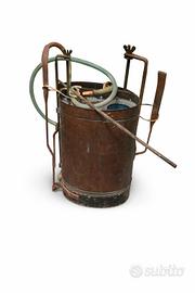 Vendo antico irroratore a spalla in metallo (rame/ferro), completo di lancia e tubo originali.