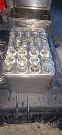 ANTICO KIT DA MEDICO COMPLETO DI STETILIZZATORE SIRINGHE IN VETRO DIAMANTATO DI VARIE MISURE E AGHI .
