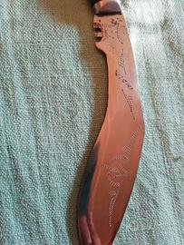 Antico Kukri nepalese finemente lavorato, completo di fodero e di due piccoli temperini, lunghezza complessiva cm. 23