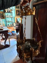 antico lampadario in bronzo dorato
