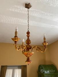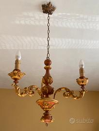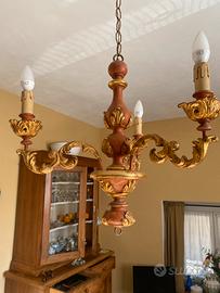 Raffinato antico lampadario in legno. Perfettamente integro e funzionante. Origine Firenze.