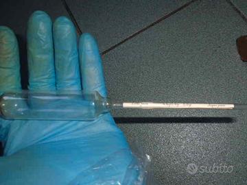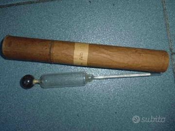 ANTICA AMPOLLA PESA LATTE-LATTOMETRO-LATTODENSIMETRO-IDROMETRO IN VETRO DENTRO TUBO CONTENITORE IN CARTONE PRESSATO, PRIMI DEL 1900.