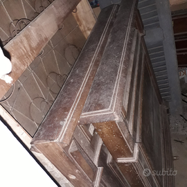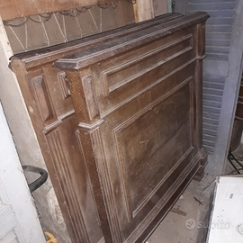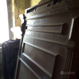 Antico letto in legno con testiera lavorata.