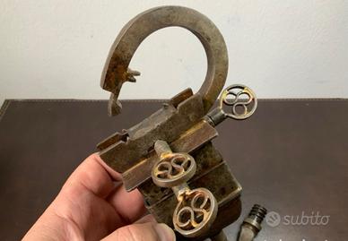 Antico lucchetto in ferro battuto con segreto 4 chiavi perfettamente fuzionante.