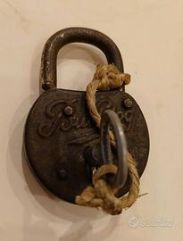 antico lucchetto in ferro rivettato "Bulldog" prima metà del novecento
