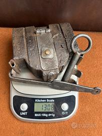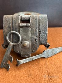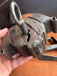 Antico massiccio lucchetto medievale a castello in ferro battuto di grandi dimensioni con segreto e con le sue due chiavi perfettamente funzionante. Se sei un appassionato, non fartelo mancare in collezione. Un pezzo di storia Italiana.. Considerevoli le misure ed il peso che raggiunge 1,3 kg. Rinvenuto da amici anni addietro in una cascina diroccata del Piacentino che ebbero ad acquistare. Ti invito a visitare la mia pagina troverai di sicuro tante cose interessanti e per qualsiasi dimanda o richiesta non esitare a contattarmi. Ritiro a mano a Trezzano Sul Naviglio (MI) o spedizione in tutta Italia con tuttosubito