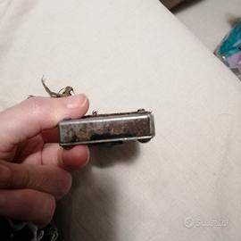 Lo sportellino che copre il buco della serratura è funzionante e ruota, su di esso è inciso il logo Burg. Ha la sua chiave originale. Il meccanismo di chiusura funziona. Larg. 4.5 alt.4,5 cm senza anello, 7.5 con anello. Segni del tempo come da foto