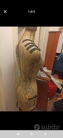 Anni 50/ 60 in legno con meccanismo per regolare la taglia. Supporto con ruote in ferro. Perfettamente conservato