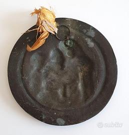 Meraviglioso medaglione in bronzo antico, scultura in bassorilievo raffigurante la Madonna della Seggiola di Raffaello Sanzio, databile verso la fine del XIX secolo.