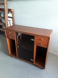 antico mobiletto porta tv con piano sopra rotante