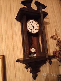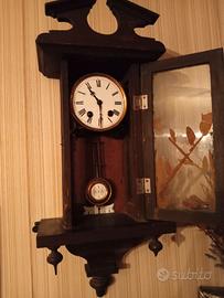 Vendo antico orologio a pendolo da muro con carica a molla del '900, in legno pregiato con vetri laterali lisci e quello anteriore dipinto all'interno(vedi le foto), la carica è con la chiavetta: necessita di revisione da parte di un orologiaio in quanto è da molto rimasto fermo.