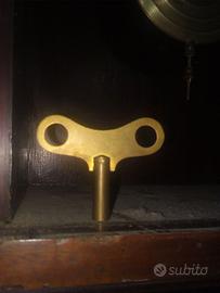 Questo raro pendolo e’ l’orologio da parete del nonno a 5 canne. I rintocchi sono chiari e ti faranno sapere ogni 15 minuti con i rintocchi e nelle ore intere con il numero dei gong che ora e’. Ha un meccanismo davvero eccezionale in quanto consente di sincronizzare l'orologio e il suo carillon e gong con solo un tiro di un piccolo filo sul lato destro del meccanismo dell’orologio (meccanismo davvero raro).