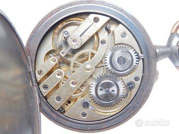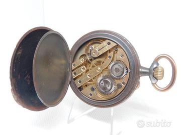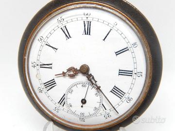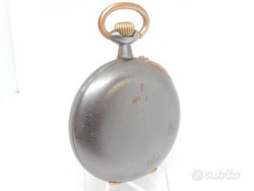 Antico orologio da tasca primi del 900 con quadrante in ceramica , movimento meccanico a carica manuale , cassa brunita . Diametro cassa mm 50 . L'orologio e' in buone condizioni e funzionante .