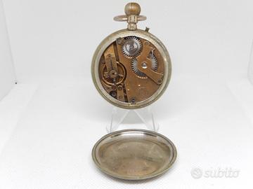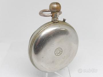 Antico orologio da tasca ROSKOPF primi del 900 con quadrante in ceramica marcato Roskopf , scala delle 24 ore e vetro minerale . Movimento meccanico a carica manuale marcato Roskopf . Cassa in acciaio marcata Roskopf . Diametro cassa mm 57. L'orologio e' in buone condizioni e funzionante , va avanti .