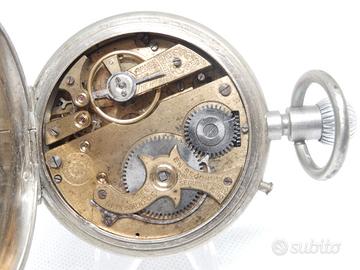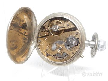 Antico orologio da tasca Systeme Roskopf primi del 900 con quadrante in ceramica con scala delle 24 ore e dei secondi , lancette lavorate . Movimento meccanico a carica manuale . Cassa in acciaio . Diametro cassa mm 57 . L'orologio e' in buone condizioni come da foto e funzionante .