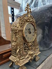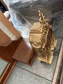 Vendo un elegante orologio da tavolo in stile barocco francese. Questo orologio è caratterizzato dalla sua struttura dorata finemente lavorata, che esprime tutta la maestosità e il lusso del barocco francese. Ricco di dettagli riccamente scolpiti e un meccanismo che racconta storie di un'altra epoca. Perfetto per chi cerca un elemento d'arredo raffinato e ricco di fascino.