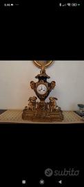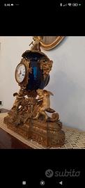 Antico orologio epoca napoleonica in bronzo dorato e ceramica blu color lapislazzuli,con quadrante Gardien Paris &Cheron misure L50 x H63 x P22