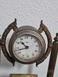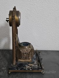 Titolo: Orologio in bronzo dorato set da scrivania. Nel rettangolo grosso metti questo ( Orologio da Tavolo: Presenta un quadrante rotondo con numeri arabi, sostenuto da due colonne laterali ornate. Questo stile a portico era molto diffuso negli orologi dell'Ottocento e del primo Novecento.
