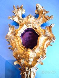 Antico Ostensorio Di Reliquiario Legno Dorato