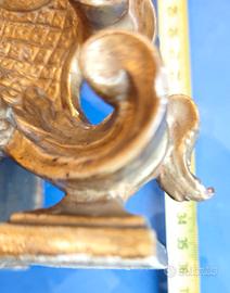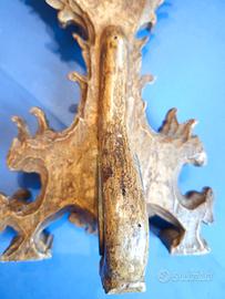 Antico Ostensorio Di Reliquiario Legno Dorato Intagliato Dorato XVII/XVIII Sec. Con base, alcune mancanze visibili in foto