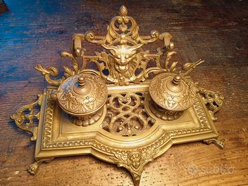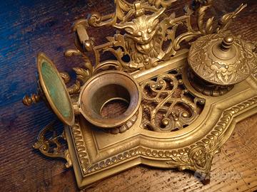 antico porta calamai e pennino in bronzo 1800