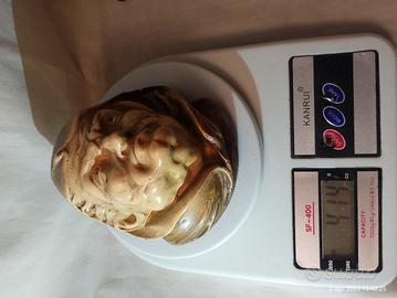 La scultura è proveniente da eredità ed è realizzata in scagliola di gesso, rappresenta il volto di un antico Monaco con espressione misteriosa, davvero un oggetto raro ed enormemente originale.