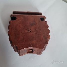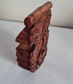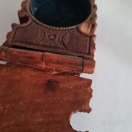 Antico porta orologio da tasca intagliato a mano Foresta Nera, ,piccolo restauro come da foto .Dimensioni cm ,9x cm.6 x cm 2 . No tutto subito Vendo € 88 . Gradito contatto telefonico wapp 3478314154