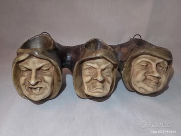 Antico Porta pipe o porta candele a 3 teste di monaco con espressioni misteriose, proveniente da eredità e risalente alla metà del XIX secolo