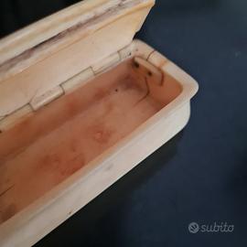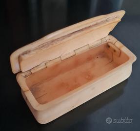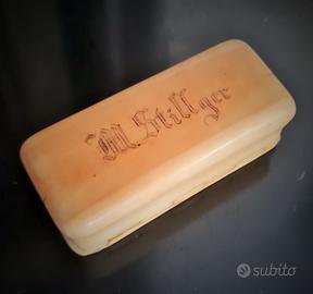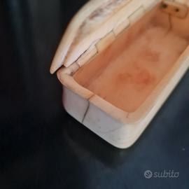 Antico porta tabacco da fiuto fine '800 realizzato in corno , personalizzato , provenienza area lingua tedesca ,restauri e piccolo crepe laterali come da foto, dimensioni cm.8 x cm.4 x cm.2,5 .Vendo a € 98. No tutto subito, Gradito contatto telefonico wapp . Cell.3478314154