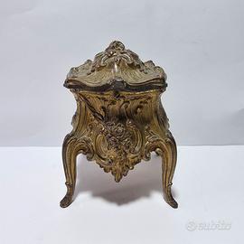 Antico Portagioie in Stile Napoleone III Risalente alla fine del XIX Secolo in Metallo Dorato.