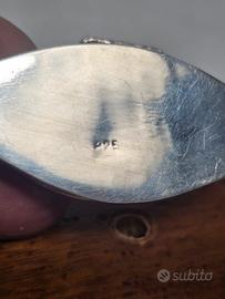 Elegante portapillole antico realizzato in argento 925con bellissimo lavoro di cesello,al centro in rilievo un cesello a forma di fiore sormontato da un castone in pietra malachite Xx Sec. Approssimativamente anni 30/40