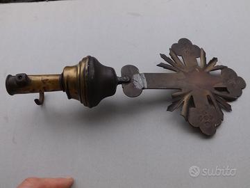 Antico puntale bandiera da processione circa meta' 1800 in discrete condizioni generali , purtroppo con il cristo mancante , lunghezza max 35 cm , segni del tempo , tutto come da foto allegate PER INFO E DOMANDE CHIAMARE DIRETTAMENTE IL 366 4755655 GRAZIE