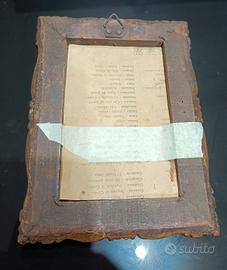La tela è fissata sul retro con del nastro di carta, che ho provveduto anche a rinforzare. Tela senza vetro in cornice. Dimensioni: Lunghezza 20 cm; Larghezza 15 cm.