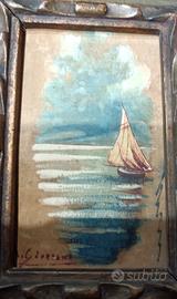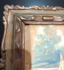 Antico quadro dipinto olio su tela di Antonio Giordano, pittore italiano del XX Secolo. Opera unica, firmata, in buono stato conservativo. Cornice in legno in ottimo stato, leggerissima scollatura in un angolo visibile in foto, ma veramente un'inezia.