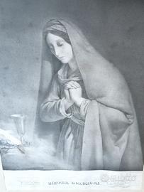 Antico quadro devozionale, presumibile seconda metà '800, con litografia Berletti, Udine - 1843, raffigurante "Mater dolorosa". La litografia presenta le macchioline bruno chiaro segno del tempo su buona parte della superficie , che tuttavia non deteriorano l'immagine . Cornice in noce massiccio con incastro a coda di rondine. Visibili segni di tarlo (non più attivo!). Misura esterna cornice: cm. 81x67x2. Misura litografia: cm. 55x40.