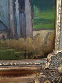 antico quadro dipinto su tavoletta raffigurante chiesa in val Venosta. Il prezzo è comprensivo della cornice come da foto.