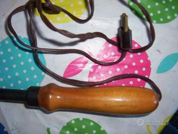 ANTICO SALDATORE CON MANICO IN LEGNO, FILO E PRESA ORIGINALI, FUNZIONANTE