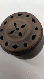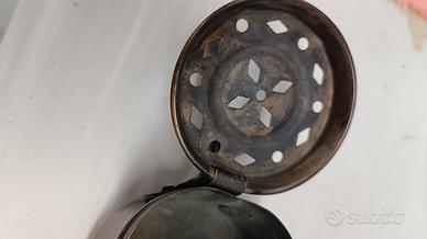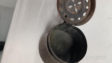 antico scaldaletto in rame in miniatura altezza 15 cm