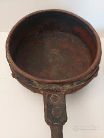 Antico scaldaletto in rame con manico. Risale ai primi anni del '900. La parte superiore con i fori è staccata dal "cestello". In ottime condizioni. largo 18cm e alto 11, manico lungo.